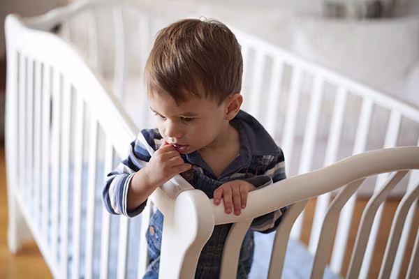 Nunca tive conhecimento de asfixia de uma criança com as protecções do berço. As protecções podem ser perigosas. Também existe o risco de asfixia quando a cabeça do bebé fica presa entre o colchão e o berço, ou entre o colchão e qualquer cobertura que não esteja segura. Muitos bebés gostam de se colocar com a cabeça encostada a qualquer coisa; pensa-se que lhes lembra o terem estado no útero num espaço muito reduzido. Se utiliza protecções para o berço, assegure-se de que estão firmemente colocadas à volta do berço com, pelo menos, seis pontos de aperto, ou molas, para os impedir de cair. Retire as protecções logo que o seu bebé consiga colocar-se em pé para evitar que ele as utilize como degrau para sair do berço. Penso que podem deixar de se preocupar com o vosso filho. Se, no entanto, decidir retirar as protecções, não se esqueça de verificar se as grades do berço não se encontram a uma distância maior do que 6 cm, para que a cabeça do seu bebé não possa ficar presa entre as grades.